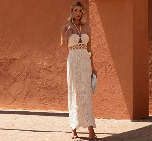 Vestido em Tricô. Disponível na cor branca. R$300,00 -