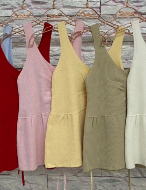 Vestido em Tricô. Disponível nas cores: Preto, bege claro, amarelo, azul claro, verde e bege escuro. R$150,00 -