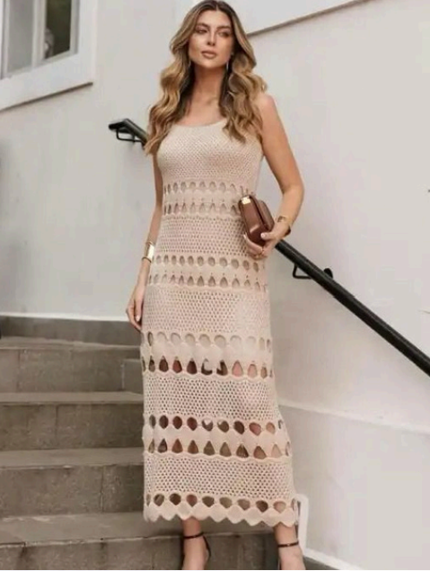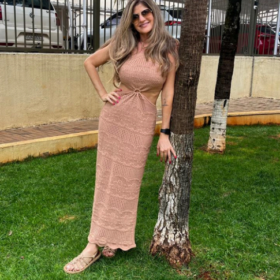 Vestido em Tricô frente única. Disponível no marrom e areia. R$300,00 -