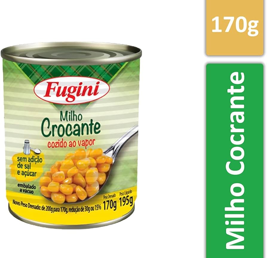 O Milho Verde Fugini Vapor é uma opção prática e saborosa para quem busca um ingrediente versátil na cozinha. Ele vem em lata de 170g, garantindo facilidade no armazenamento e transporte. Esse milho passa por um processo de cozimento a vapor, o que preserva melhor seu sabor e textura crocante. Além disso, ele é livre de glúten e pode ser utilizado em diversas receitas, como saladas, tortas, recheios e acompanhamentos O preço original era: R$11,00.R$7,75O preço atual é: R$7,75. -