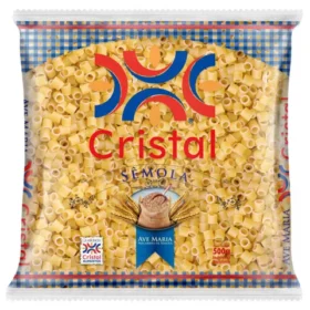 O Macarrão Cristal Ave Maria é uma massa de sêmola indicada principalmente para sopas e caldos, devido ao seu formato pequeno e versátil. Ele é produzido pela Cristal Alimentos e passa por um processo de fabricação que garante uma textura firme e um cozimento rápido, ficando pronto em 4 a 6 minutoS O preço original era: R$7,50.R$5,50O preço atual é: R$5,50. -