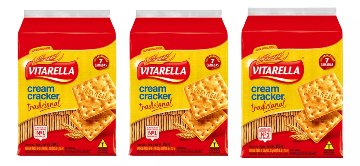 KIT 3 BISCOITO VITARELLA CREAM CRACKER 350GRS
