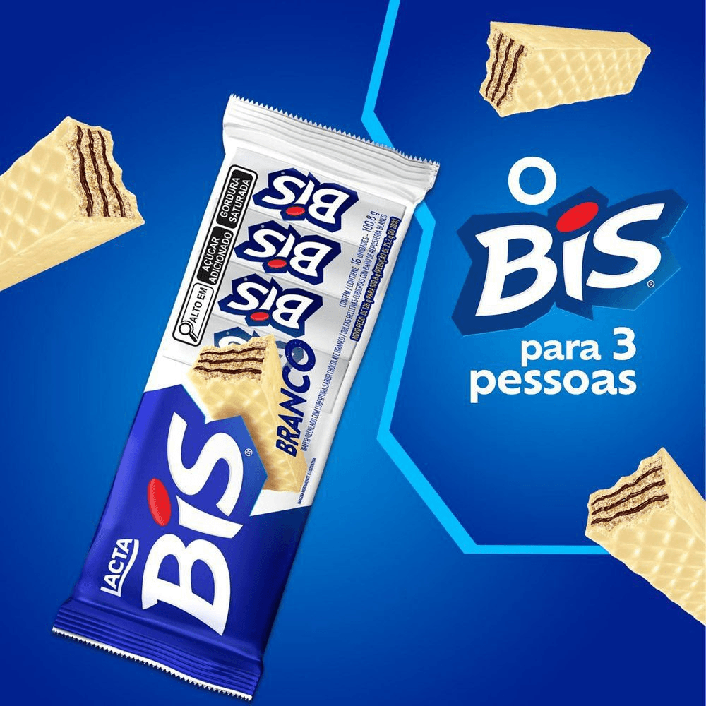 O Bis Branco é uma versão deliciosa do clássico Bis, trazendo a crocância do wafer com uma cobertura irresistível de chocolate branco. Ele é perfeito para quem gosta de um sabor mais suave e cremoso. O preço original era: R$13,50.R$10,99O preço atual é: R$10,99. -
